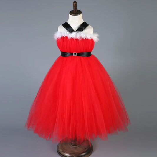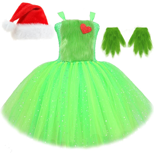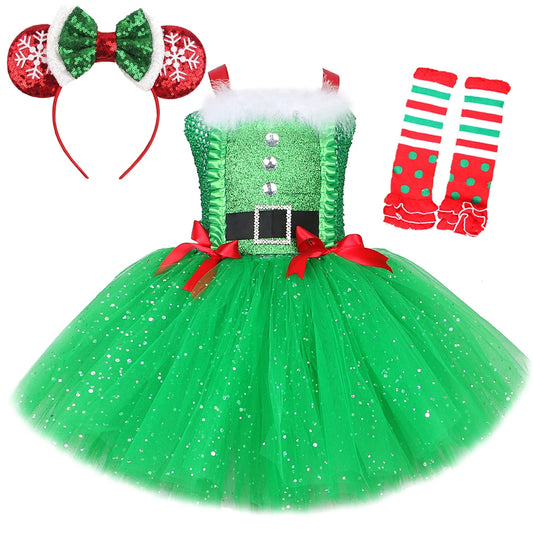Sparkly Christmas Elf Tutu Dress for Girls Santa Claus Costume