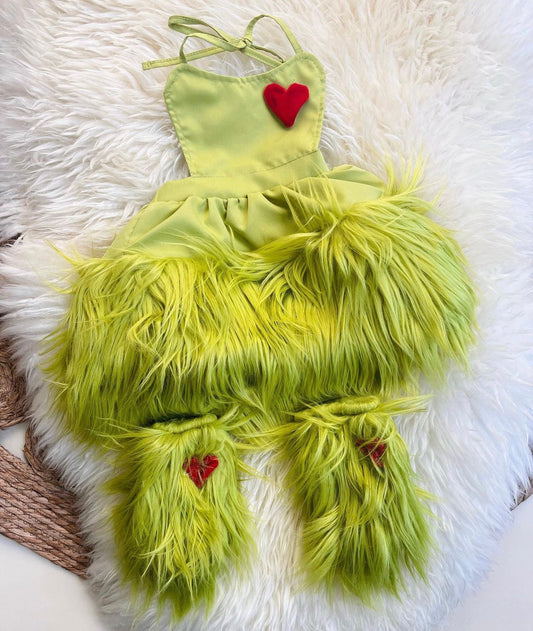 Baby Girls Grinchmas Baby Girl 2Pcs Faux Fur Tulle Christmas Halter Dress